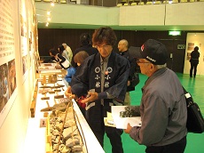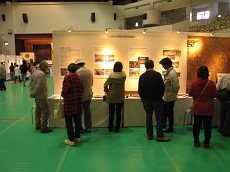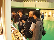 協議会では、活動の様子や石工の道具等を紹介する展示を行うとともに、ブースの来訪者には技能会員の佐藤さん、工藤さんにより、展示の説明をおこないました。 |