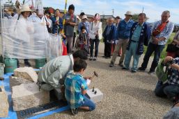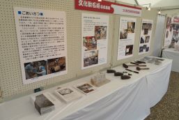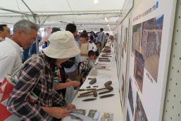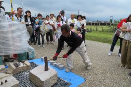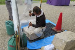 | 文化財を未来に残していくために欠かせない伝統の技「文化財の保存技術」が一堂に会した「日本の技の体験フェア2017」が文化庁の主催で平成29年9月30日(土)・10月1日(日)に三重県多気郡明和町のいつきのみや地域交流センターとさいくう平安の杜で開催されました。文化財石垣保存技術協議会からも活動の様子を紹介するパネルや石工道具野の展示を行うとともに、菊井技能会員、西川技能会員、松岡技能会員、和田技能会員による矢と矢穴による石割の実演を行いました。また、セリ矢による石割の体験も行っています。