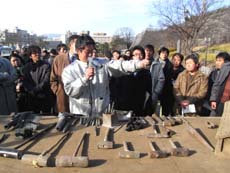 この研修会は、文化庁、山梨県教育員会等主催、文化財石垣保存技術協議会の共催で第7回全国城跡等石垣整備調査研究会が平成22年1月21日(木)から23日(土)に甲府市で開催され、本会から40名が参加し実地研修を行いました。
