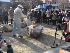 ■木のクサビで石割実験 |