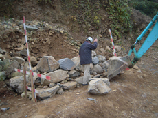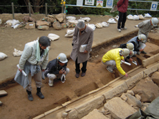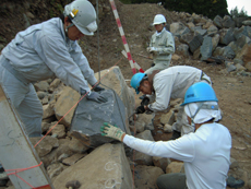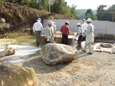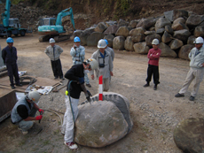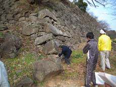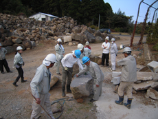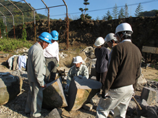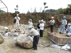 文化財石垣の保存修理に携わる中堅技能者、及び現場管理を行う技術者の知識の習得と資質の向上を目的とする第2回研修会を、平成22年11月19日(金)から23日(火・祝)に肥前名護屋城跡、唐津城跡、唐津市(実技)で開催し、実習及び現地見学を行いました。