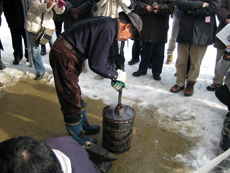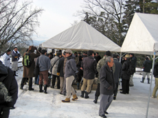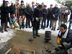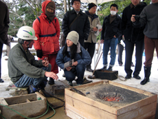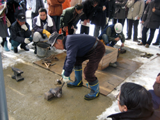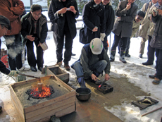 鳥取城跡では、上月協議会副会長と石工の平尾氏により鍛冶の実演を見学させていただきました。大雪の寒い中、ありがとうございました。 |
