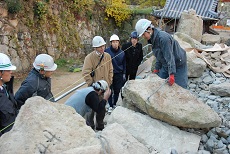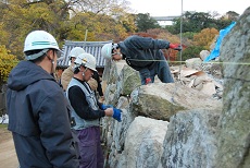 この研修は、文化財石垣の保存修理現場において伝統技術の継承を目的としています。。