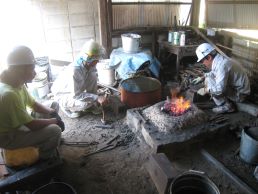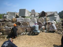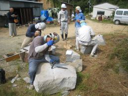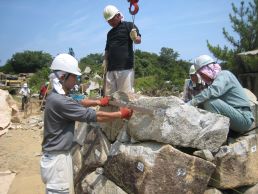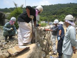 13日から16日にかけて天和採石場(赤穂市)において矢穴による石割、平成27年度の実習で積んだ石垣の解体・移設、鍛冶による道具製作の実習を行いました。17日には日本城郭研究センター(姫路市)において、「城郭石垣の「意匠」の歴史と多様性」について宮武正登評議会員よる講演を受講しました。