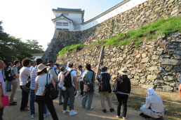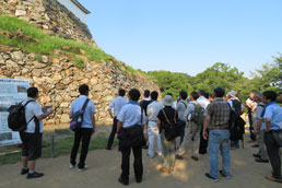 文化財石垣の保存技術について事例研究などの講義や現地見学を実施しました。15日には東日本の野面積み石垣について、会員以外の方も聴講可能な公開講座を開催しています。最終日には「石垣普請の組織と技術」について木越隆三評議会員よる講演を受講しました。
