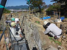 史跡津山城跡の石垣修理現場において、平成30年10月19日(金)から10月21(日)まで石垣解体作業へ参加し研修を行いました。